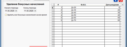 Удаление бонусных начислений как за период, так и за весь срок работы.